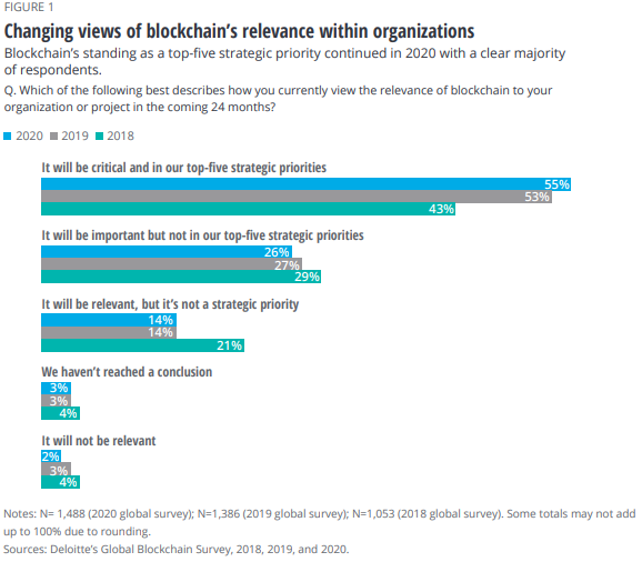 55%的受访者将区块链列为战略重点
