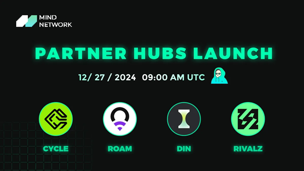Mind Network 宣布,将于2024年12月27日09:00 UTC推出四大全新 MindV 合作 Hub:Roam、DIN、Rivalz 和 Cycle。这些创新的 Hub 集成了 DePIN、AI 原生数据预处理层以及链抽象互操作性,与 Mind Network 的全同态加密(Fully Homomorphic Encryption, FHE)技术无缝结合。此技术组合为多种应用场景提供了隐私保护、安全性和高效性能,为以加密为核心的 Web3 解决方案设定了新标杆。