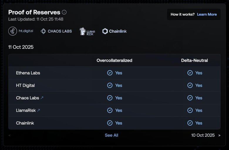 用户可通过Ethena官方透明度仪表板、Chaos Labs预言机平台以及Llama Risk验证服务查看详细的储备数据。该协议强调将继续保持"最大透明度"原则,确保用户对协议安全性的信心。